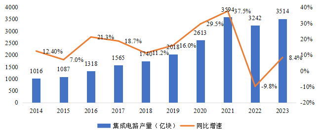 圖1 2014-2023年我國集成電路產(chǎn)量規(guī)模