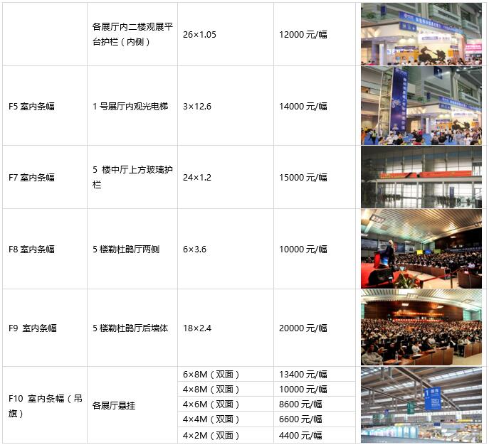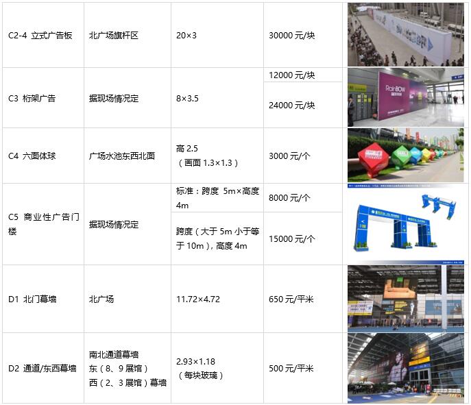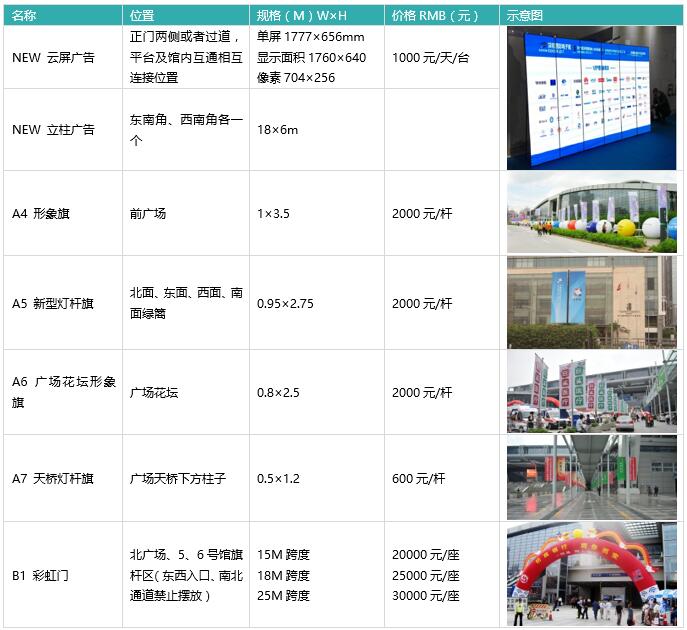 8. 以上項目除已注明單價費用的發(fā)布時間外,其余項目單價發(fā)布時間均為展會期間