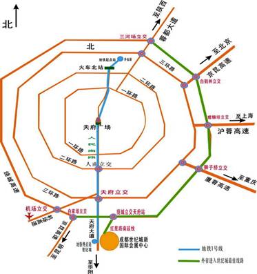 雙流機(jī)場(chǎng)——世紀(jì)城:乘300路——?jiǎng)δ洗蟮栏谴蟮揽? 換乘188路——世紀(jì)城
